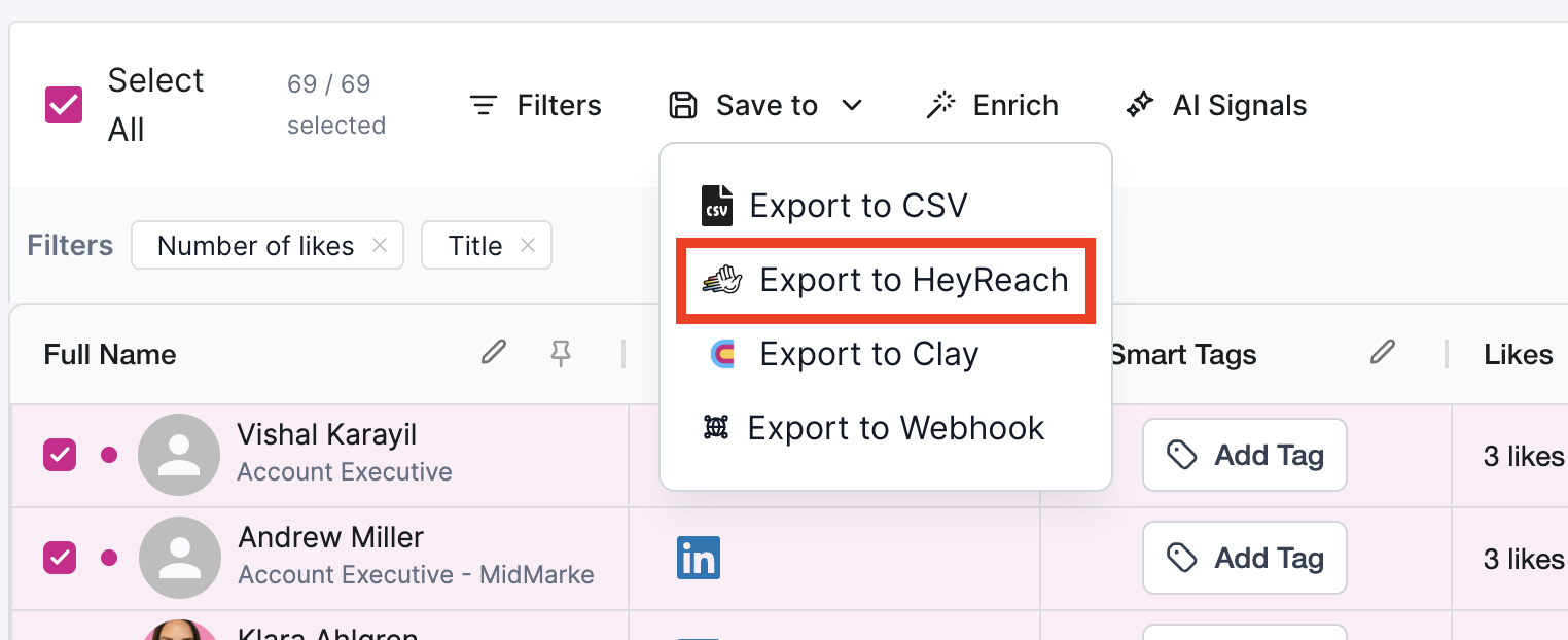 Filter your targeting by company size, job title, industry, and region for hyper-targeted social engagement.