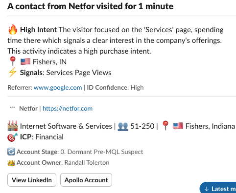 Instantly access verified decision-maker emails, job titles, and LinkedIn profiles from visiting accounts.